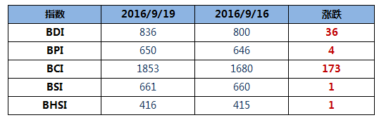 9月19日消息,波罗的海干散货运价指数(BDI指数)周一大涨36点,或环比上升4.50%,为836点。